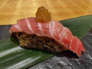 2025年10月01日 本日のオススメ一貫 脂ののった旬の秋刀魚を炙りで一貫。 肝醤…